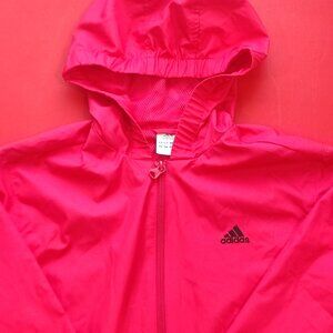 Adidas hooded windbreaker pink white 3 black stripes women's junior size L 14