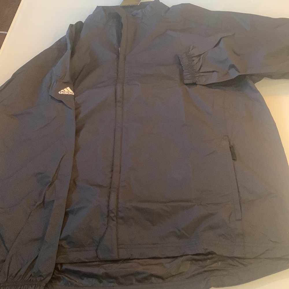 New with tags. Black Adidas Climaproof jacket. From the adidas golf line. Two zip pockets. Adidas branding on the sleeve in white embroidery. Pit to pit 26” length front 30.5” back 32.5”. Measurements approximate.