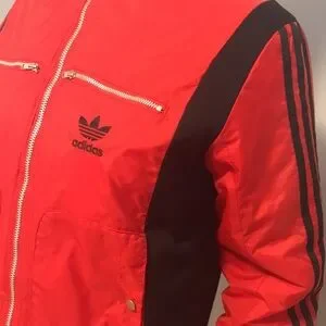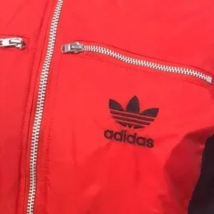Classic Adidas in great condition. 4 pockets with zip sleeves. Nylon fabric, lined with a light filling, perfect for cooler days. Size medium, please reference photos for measurements.
