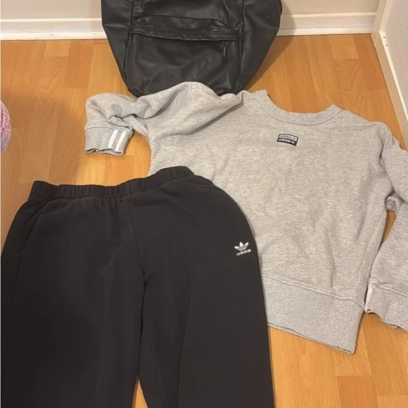 Sweatshirt size medium Sweatpants size large Faux leather backpack