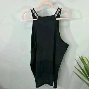 Adidas workout tank. high neck, with mesh panel on the lower back and side slits.