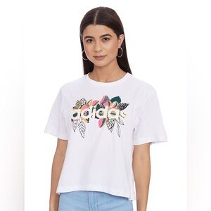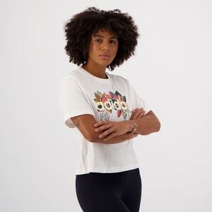 Adidas x Farm Rio Floral Logo Cropped White T Shirt Size Large