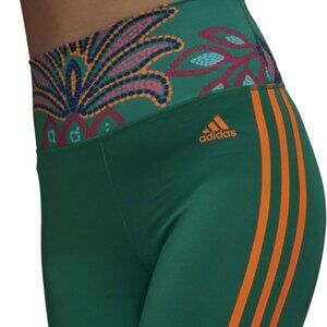 A bold print accents the waistband of these leggings complete with 3-Stripes down the side for adidas signature style.