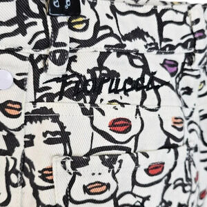 Adidas x Fiorucci Highlight Shorts Size Small Abstract Art Denim Snap Sides