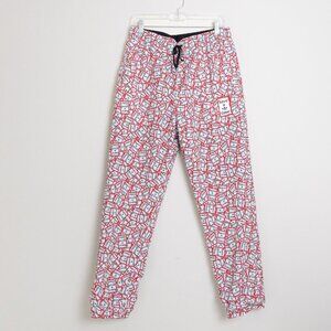 Limited edition Adidas Originals x Have A Good Time reversible track pants in excellent condition. Features classic black 3-stripe Adidas design on one side, and bold all-over “Have A Good Time” logo print on the reverse. Elastic waist with drawstring, zip pockets, and ankle cuffs. Lightweight and breathable—perfect for streetwear collectors or anyone who loves a versatile statement piece.