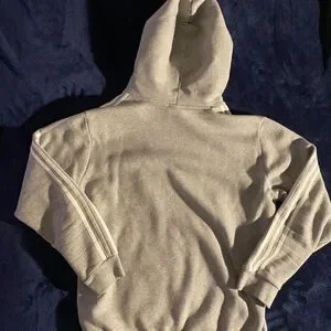 Adidas sweatshirt in a heather grey colour. Has the three stripes down the sleeves. In great condition.