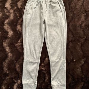 Light salt and pepper with 3 silver strips the length of the outer side of leg.