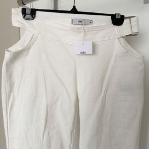 Brand new, never been worn (with tags) cut-out white flare jeans from Adika. Style is "Harper". Women's medium, but would fit a small.