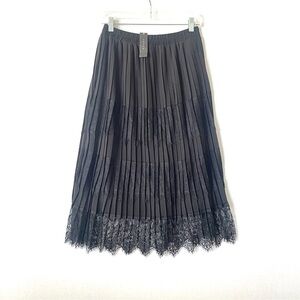 Adiva Pleated Lace Midi Skirt in Black NWT