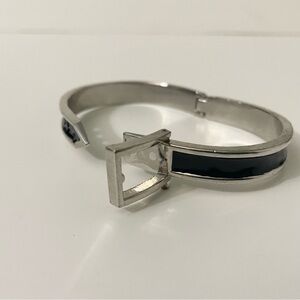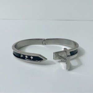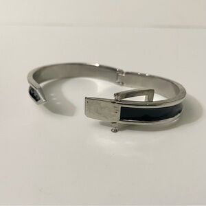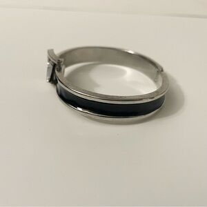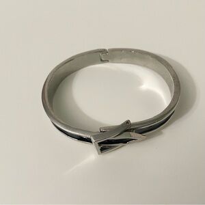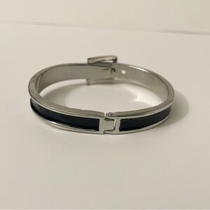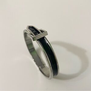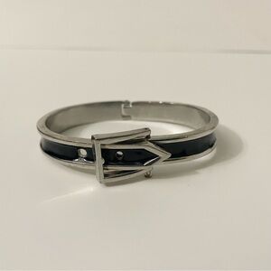Adjustable Belt Black & Silver Enamel Paint Metal Hinged Bangle Bracelet