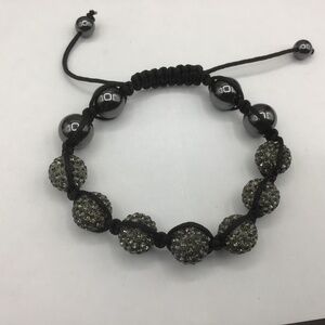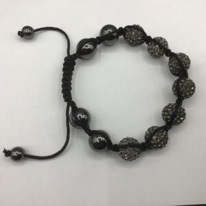 Adjustable Cord Hematite & Black Shambalia Beads Bracelet