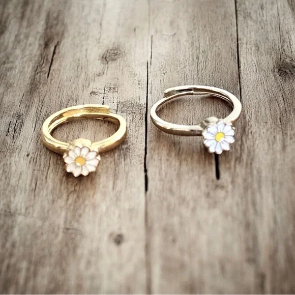 Great for fidgeting or anxiety. These spinner daisy flower rings are fun. Available in gold and silver plated and they are adjustable.