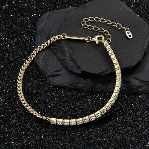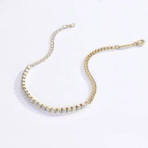 Chain: Half tennis bracelet, half curb chain, creating a trendy contrast