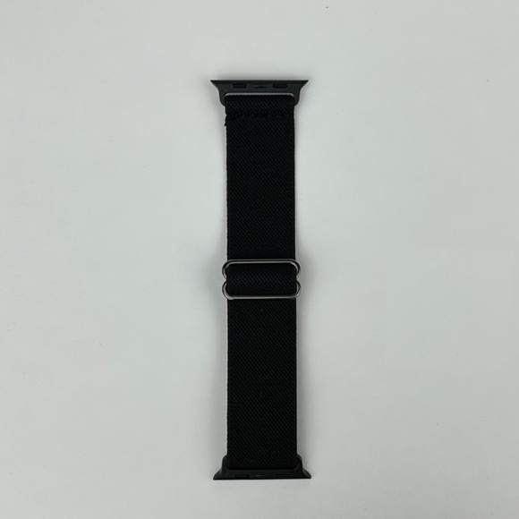 Brand new adjustable nylon loop strap with buckle for Apple Watch in size 38/40/41 mm and 42/44/45 mm. Please select the size according to your Apple Watch. Colour is black.