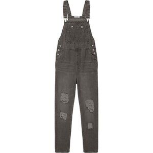 Adjustable Strap Loose Distressed Ripped Bib Overall Jumpsuit Size L