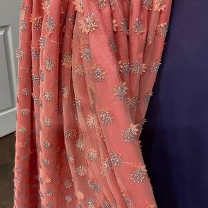 Brand new, custom made for a lehenga but can be worn as a regular skirt. zipper close with waistband straps so it’s adjustable. Maxi length, super heavy honestly. Shoot me a message ! price is negotiable as the decals are coming off