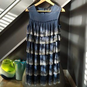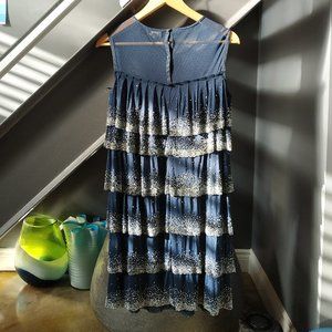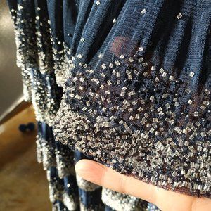 Adolfo Dominguez is a celebrated Spanish designer known for his extremely flattering designs for women. This particular dress is hand-beaded with crystal beads on 6 separate layers. It is fully lined and has some weight to it due to the beads but it adds to the buoyancy when you walk.