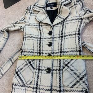Adolfo cream black gray plaid check fall/winter coat size Medium