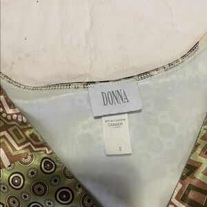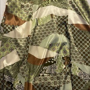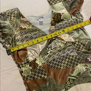 Stylish mini dress with a unique pattern. Features olive and chestnut tones. Ideal for a trendy outfit.