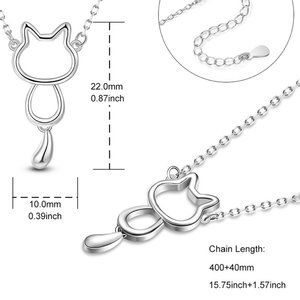 Adorable 925 Sterling Silver Cat Necklace with Swinging Tail - Kitty Lovers Gift