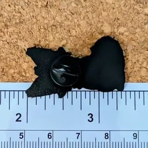Adorable fox enamel pin. Soft gray and white fur with pink eyes. High-contrast black outlines. Cute chibi style. Perfect for backpacks and jackets.