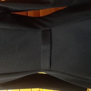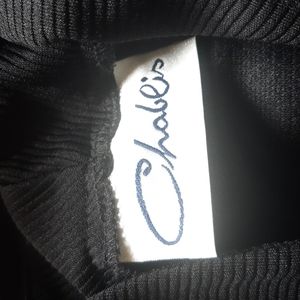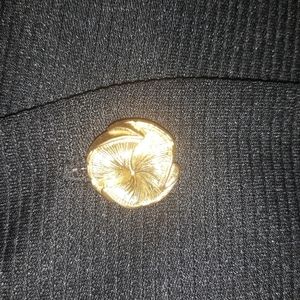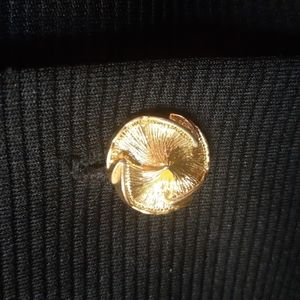 Beautiful black jacket by Chablis features a swing style hem, fitted front and back and bright metallic buttons. Polyester material is textured. Size and care tags removed. Measures 27" shoulder to hem and 17" armpit to armpit. Fits like a size Small.