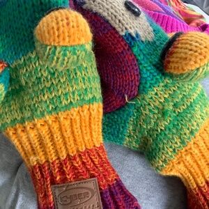 Kyber outerwear playful monkey hat and matching mittens.