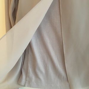 Excellent used condition. Satiny/t shirt under layer (96% viscose 4% elastane), chiffon top layer (100% polyester). Top layer is basically wrinkle proof. Size 2, fits like an xs. The first photo is a good indication of colour in full daylight.