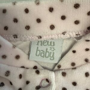 Adorable Pink Polka Dot Velour Onesie Sleeper/Romper with floral accents