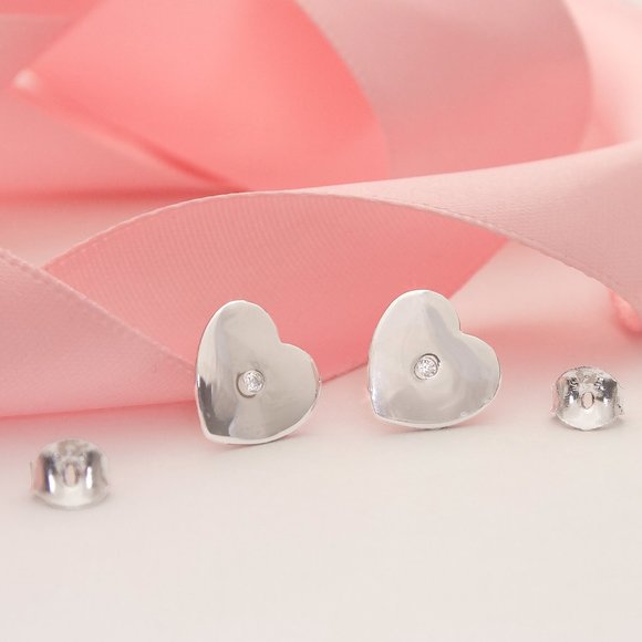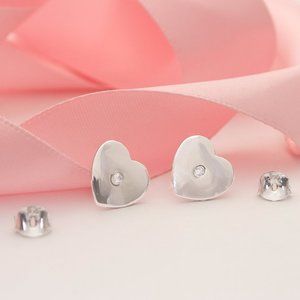Adorable Real Sterling Silver Heart Earrings w Sparkling CZ Stones Stamped 925