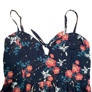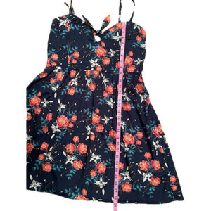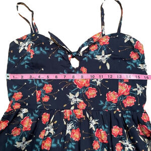 Strappy (adjustable) and fun Roxy floral mini dress. Cute keyhole at the neck/bust with a tie. The back of this dress has a stretchy band for extra comfort as well as a zipper. This is an Australian size XL so I have included the measurements in the photos.