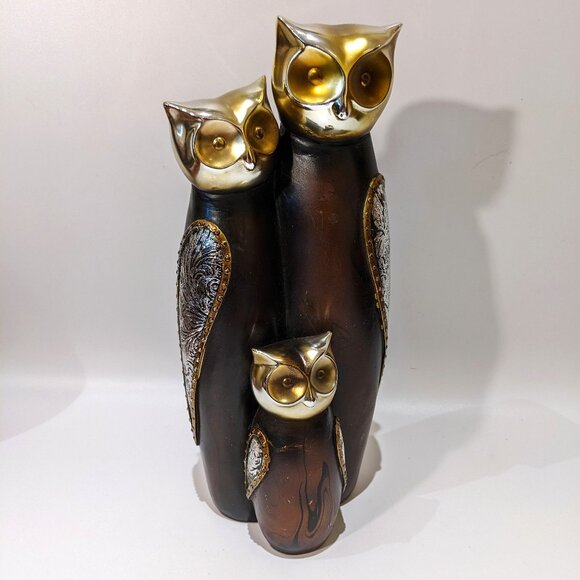 Adorable Trio of 3 Wise Owls Mama Papa Baby Décor Accent Piece Gold & Brown