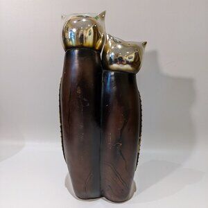Made of faux / very light wood? The owls have gold heads atop brown bodies with lovely applique wings in silver and gold.