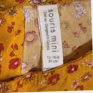 The prettiest matching set with dress, headband, and bloomer. Features a lovely floral print on a bright, summery yellow fabric. Size 12–18 months. Perfect condition — worn and washed only once.