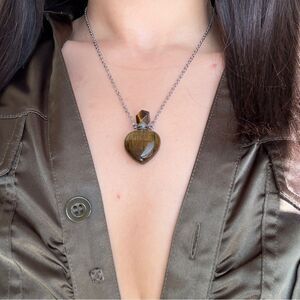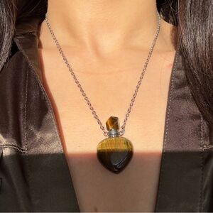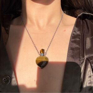 Adorable perfume bottle aromatherapy tiger’s eye heart shape pendant necklace