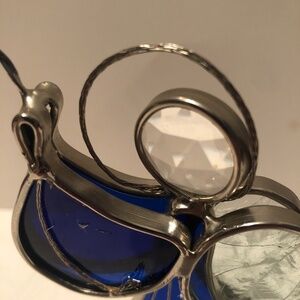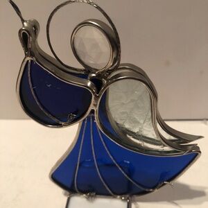 Adorable blue and white stained glass angel with star wand . Use on your mantel or side table with little sparkling lights around it. Add to your angel collection or buy for someone special.