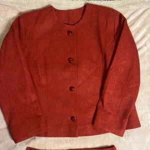 Super cute vintage women’s suit in a red heather felt type fabric. Fully lined. Mint condition!