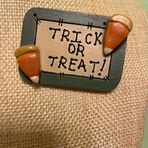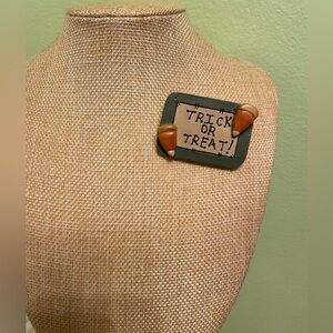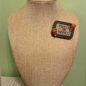 Adorable wooden trick or treat brooch