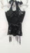Adore Me Black Sheer Sequin Bustier Corset, S with removable belt and garters