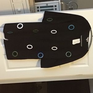 Black suede like reversible jacket with multi coloured grommets on one side and gold in reverse