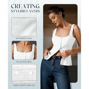 Adorpop Womens White Ribbed Sleeveless Blouses Button Down Henley Shirts
