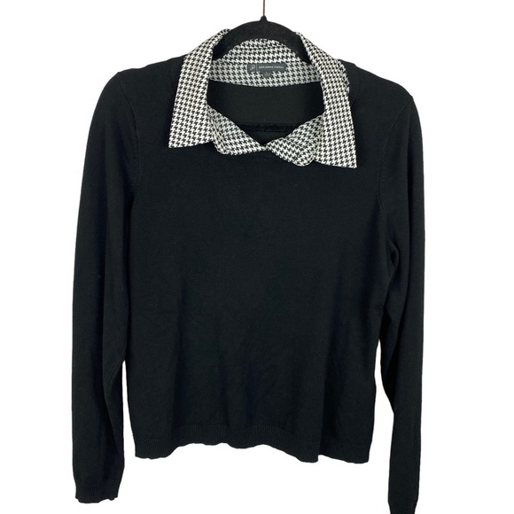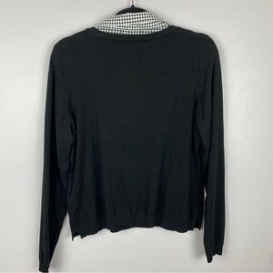 Adriana Papell Black Houndstooth Collar Viscose Blend Sweater Large