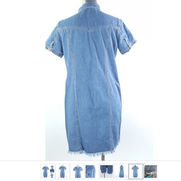 Adriana Sport Vintage Women Denim Polo Dress Button Downs Frayed Hem Blue