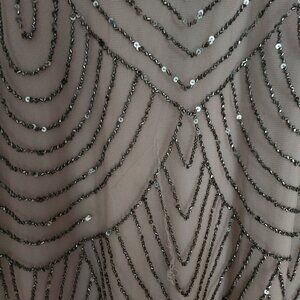 Adrianna Papell Beaded Mesh (Champagne Gold) Floor Length Gown, Size 12