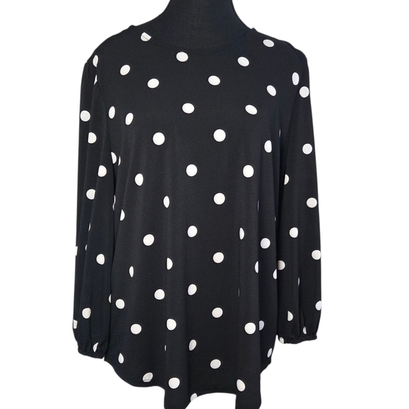 Elegant long sleeve top with bold polka dots. Comfortable and versatile. Length 27" Ptp 21" Sleeves 18"