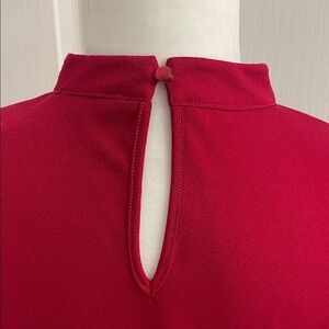 This red blouse features a stylish keyhole design and flutter sleeves, perfect for the office or a night out.