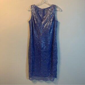 Adrianna Papell Blue Lace V-neck Sleeveless Cocktail Dress With Silver Beading
