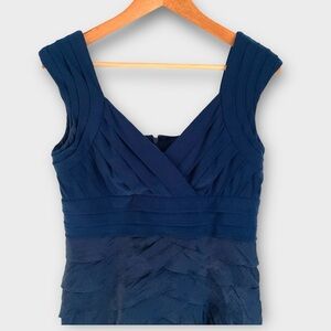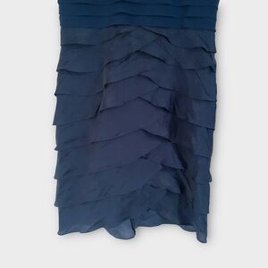 Adrianna Papell Cocktail Dress Tiered Ruffle Navy Blue V-Neck Sheath Sz 10