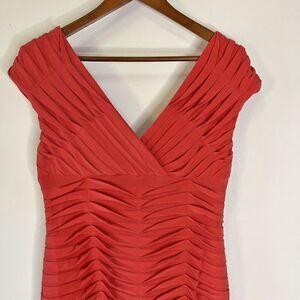 Adrianna Papell Coral Red Pintuck V-Neck Sleeveless Dress