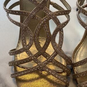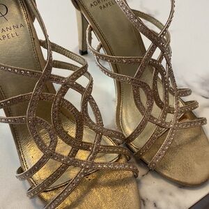 Adrianna Papell Elixir High Heel Strappy Sandal in Gold Platinum with Rhinestone